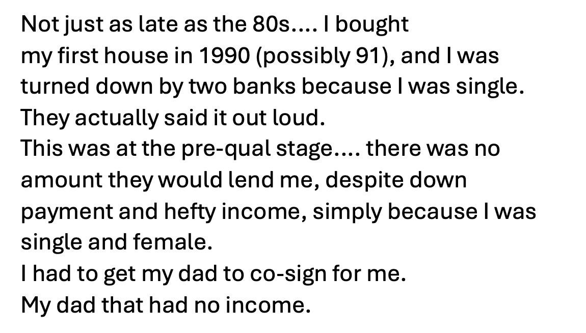 Oh, and when I say “anyone” could buy them — I mean anyone male, married, and probably on the pale side… so yes, financing “guidelines” are one thing that have evolved for the better, especially in Canada.